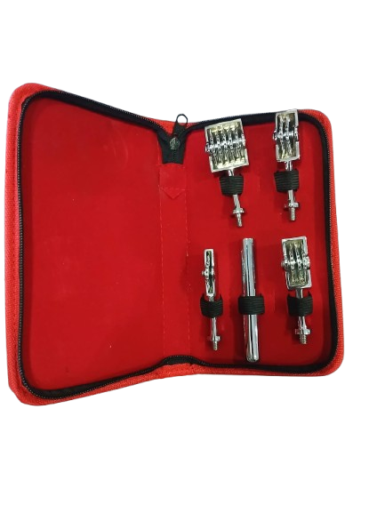 handle, all neatly packed in a durable black & red travel pouch.
